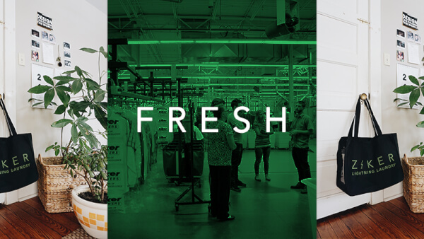 In lieu of the word clean, we're prioritizing the word fresh. Clean can occasionally mean sterile, but Ziker is a brand that we want to feel home-y. "Dry cleaning" can conjure up images of tight collars and stuffy office environments. But by using words like "fresh," we hope to align ourselves with that relaxing feeling of a clean house after a long day. Sure, we clean suits and ties, but we also wash blankets and pajamas. We're part of a complete, fresh, lifestyle. Fresh breath, fresh air, fresh clothes - that's what we provide. That's Ziker Fresh.